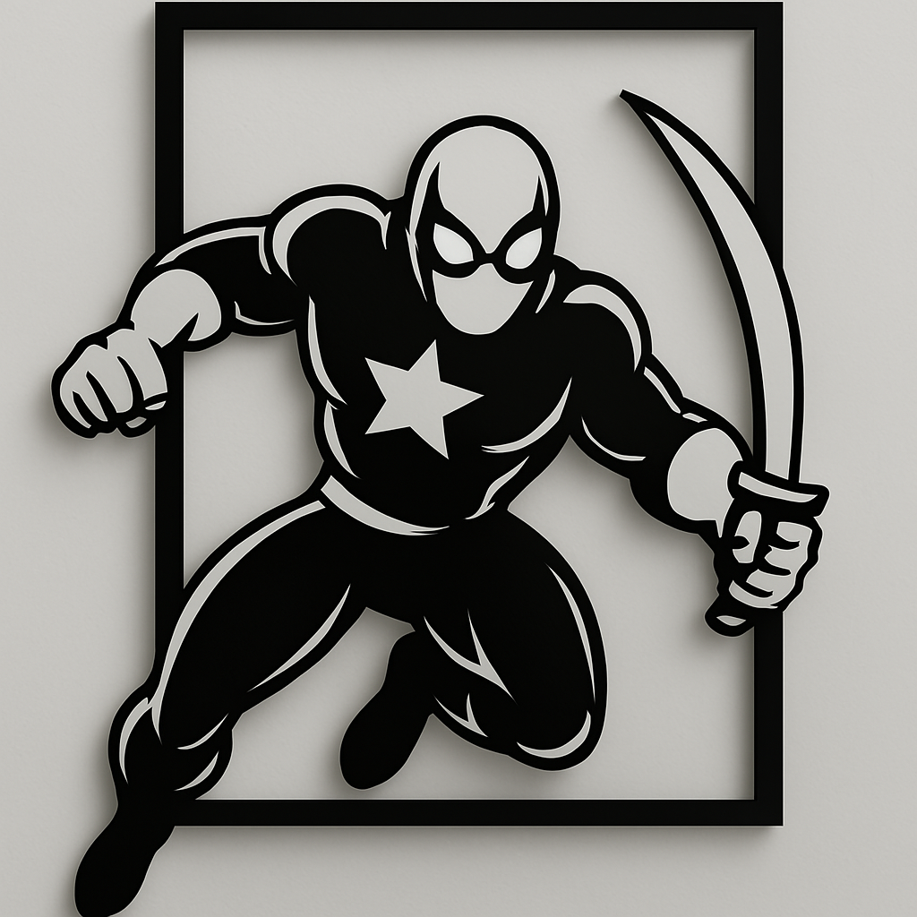 Adaugă un strop de putere și stil camerei copilului tău sau spațiului tău preferat cu acest tablou decorativ realizat din MDF, decupat cu laser în formă de supererou. Designul este creat pentru a ieși în evidență – la propriu – ieșind din cadrul negru, cu un efect 3D spectaculos.